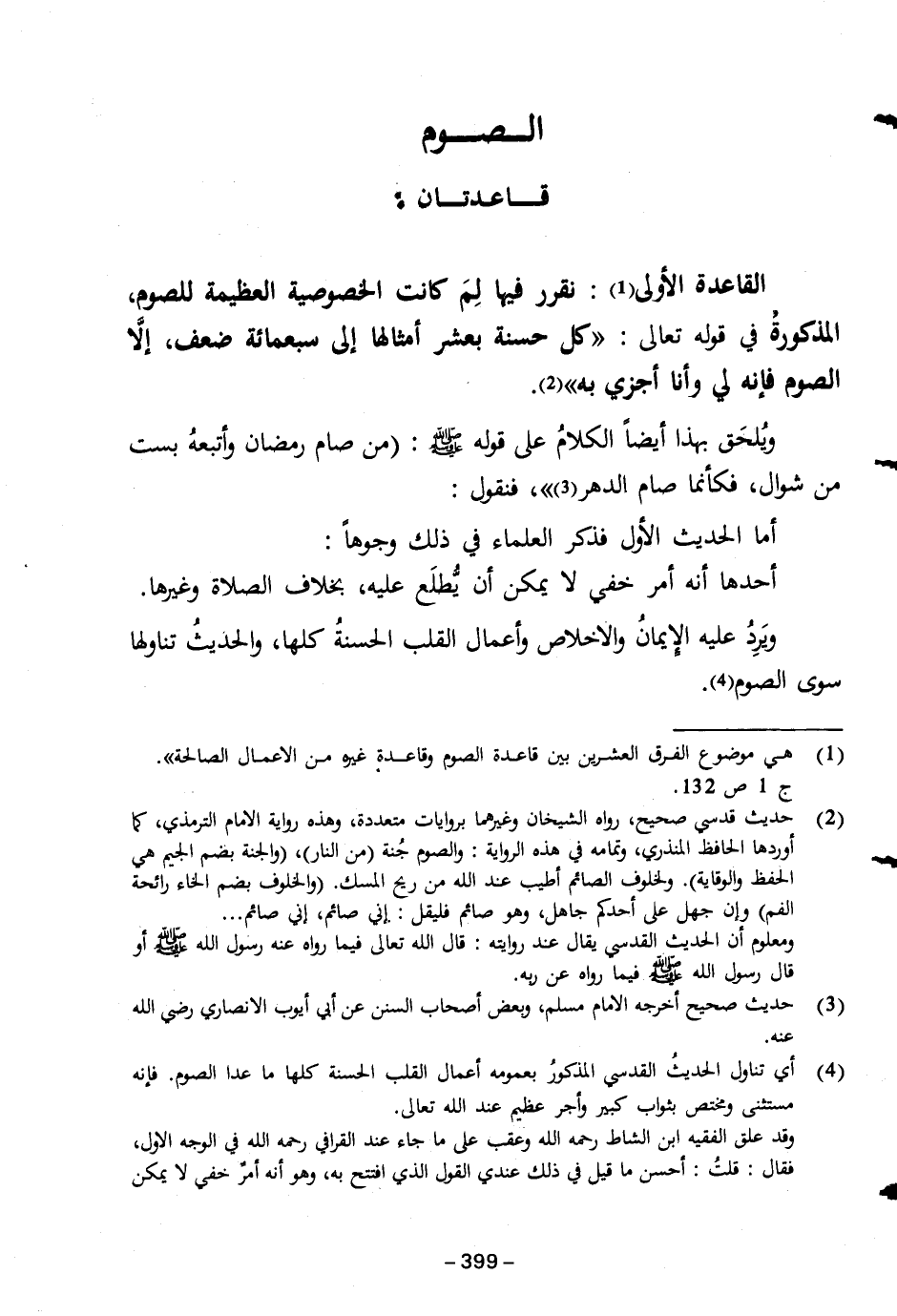 (١) هي موضوع الفرق العشرين بين قاعدة الصوم وقاعدة غيره من الاعمال الصالحة". جـ ١ ص ١٣٢.