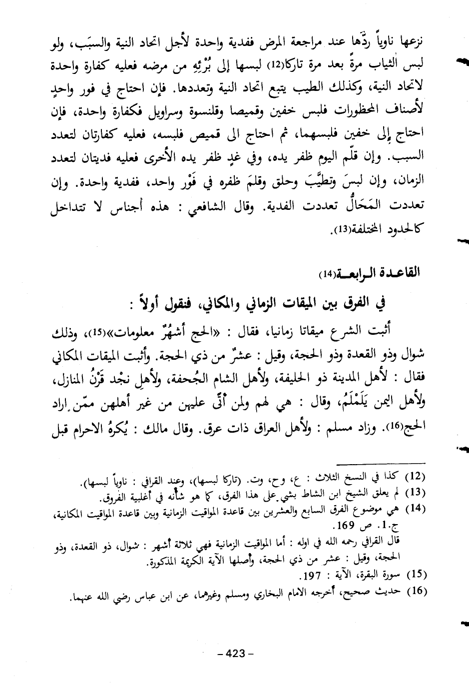 (١٤) هي موضوع الفرق السابع والعشرين بين قاعدة المواقيت الزمانية وبين قاعدة المواقيت المكانية، جـ ١. ص ١٦٩.