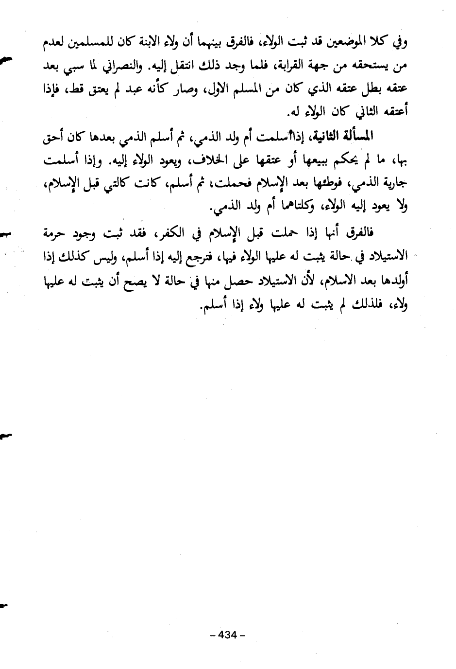 وفي كلا الموضعين قد ثبت الولاء، فالفرق بينهما أن ولاء الابنة كان للمسلمين لعدم من يستحقه من جهة القرابة، فلما وجد ذلك انتقل إليه. والنصراني لما سبي بعد عتقه بطل عتقه الذي كان من المسلم الاول، وصار كأنه عبد لم يعتق قط، فإذا أعتقه الثاني كان الولاء له.