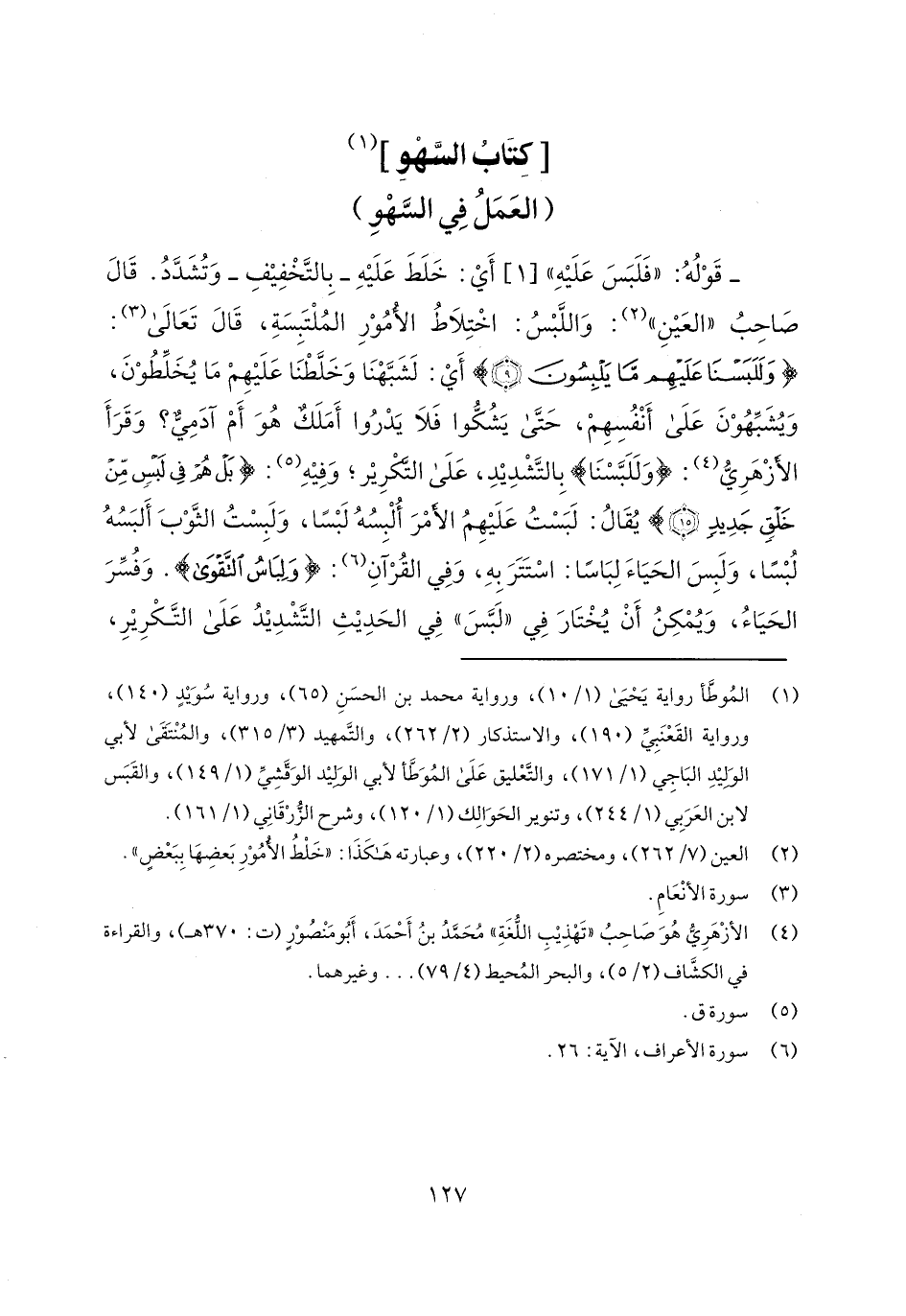 قوله: "فلبس عليه" [1] أي: خلط عليه- بالتخفيف- وتشدد. قال صاحب "العين": واللبس: اختلاط الأمور الملتبسة، قال تعالى: {وَلَلَبَسْنَا عَلَيْهِمْ مَا يَلْبِسُونَ (9)} أي: لشبهنا وخلطنا عليهم ما يخلطون، ويشبهون على أنفسهم، حتى يشكوا فلا يدروا أملك هو أم آدمي؟ وقرأ الأزهري: {وَلَلَبَسْنَا} بالتشديد على التكرير؛ وفيه: {بَلْ هُمْ فِي لَبْسٍ مِنْ خَلْقٍ جَدِيدٍ (15)} يقال: لبست عليهم الأمر ألبسه لبساً، ولبست الثوب ألبسه لبساً، ولبس الحياء لباساً: استتر به، وفي القرآن: {وَلِبَاسُ التَّقْوَى}. وفسر الحياء، ويمكن أن يختار في "لبس" في الحديث التشديد على التكرير،