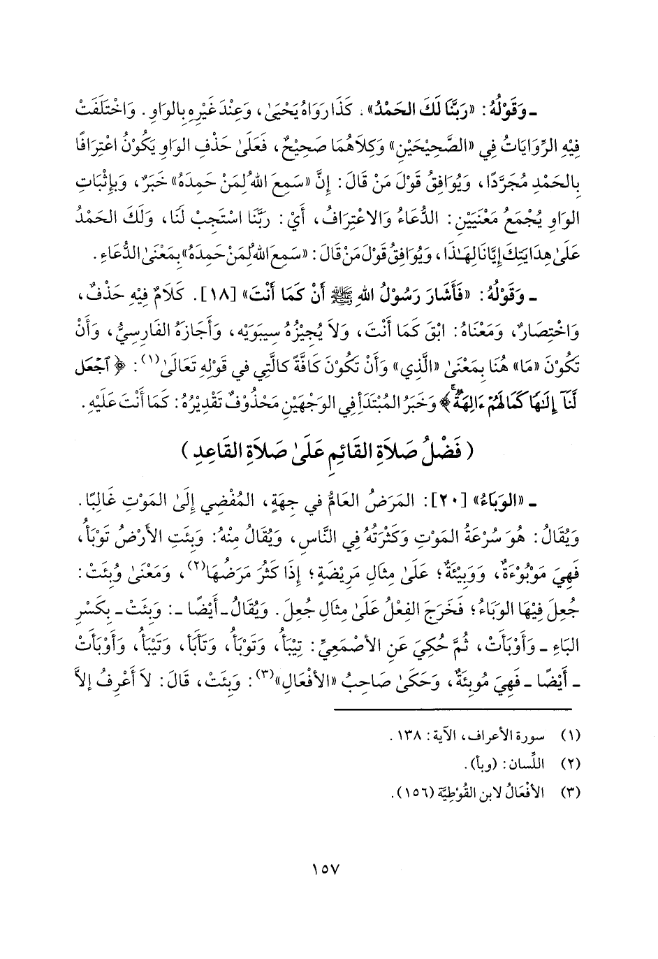 وقوله: "ربنا لك الحمد". كذا رواه يحيى، وعند غيره بالواو. واختلفت فيه الروايات في "الصحيحين" وكلاهما صحيح، فعلى حذف الواو يكون اعترافاً بالحمد مجرداً، ويوافق قول من قال: إن "سمع الله لمن حمده" خبر، وبإثبات الواو يجمع معنيين: الدعاء والاعتراف، أي: ربنا استجب لنا، ولك الحمد على هدايتك إيانا لهذا، ويوافق قول من قال: "سمع الله لمن حمده" بمعنى الدعاء.