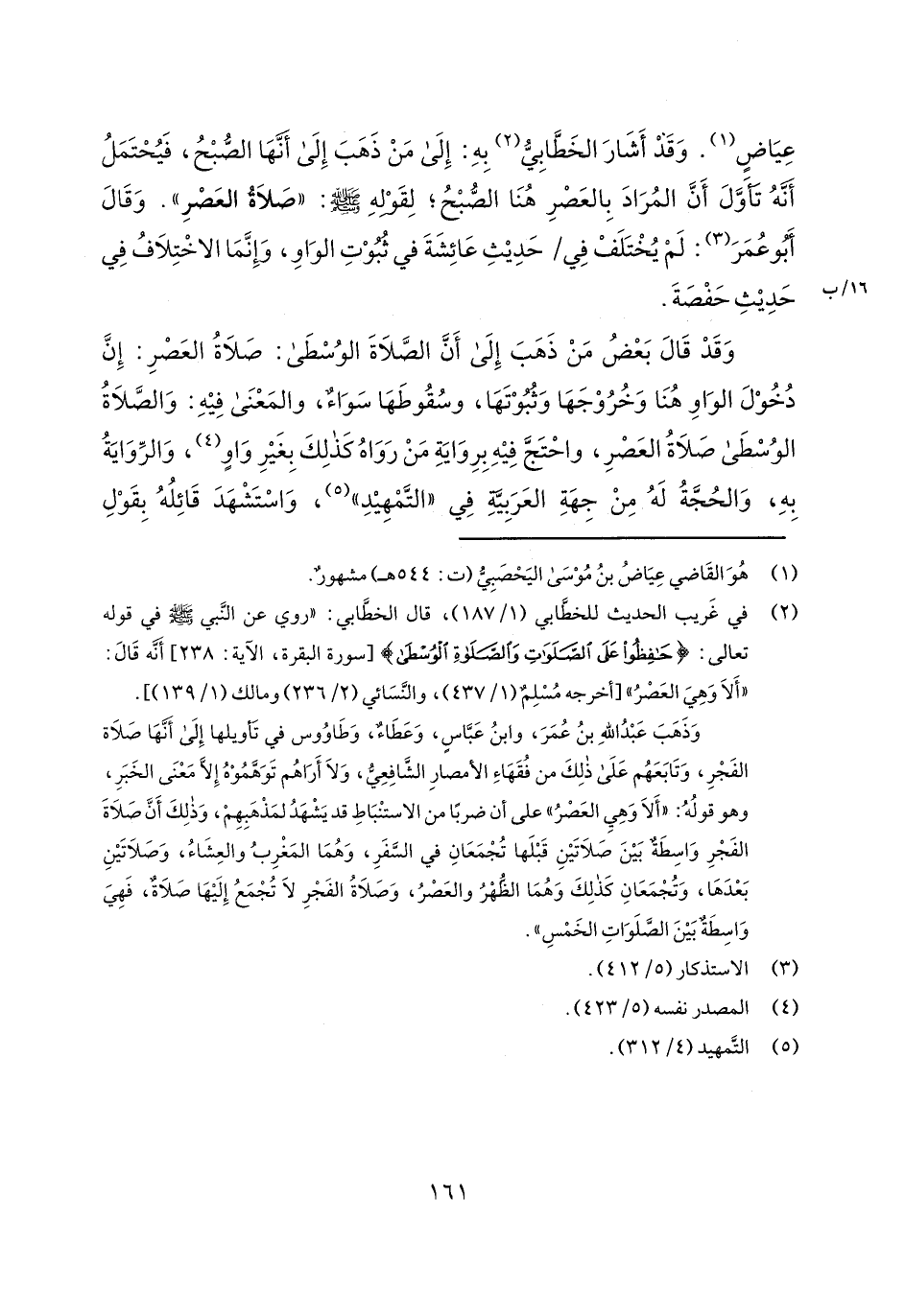 عياض. وقد أشار الخطابي به: إلى من ذهب إلى أنها الصبح، فيحتمل أنه تأول أن المراد بالعصر هنا الصبح؛ لقوله صلى الله عليه وسلم: "صلاة العصر". وقال أبو عمر: لم يختلف في/ 16/ب حديث عائشة في ثبوت الواو، وإنما الاختلاف في حديث حفصة.