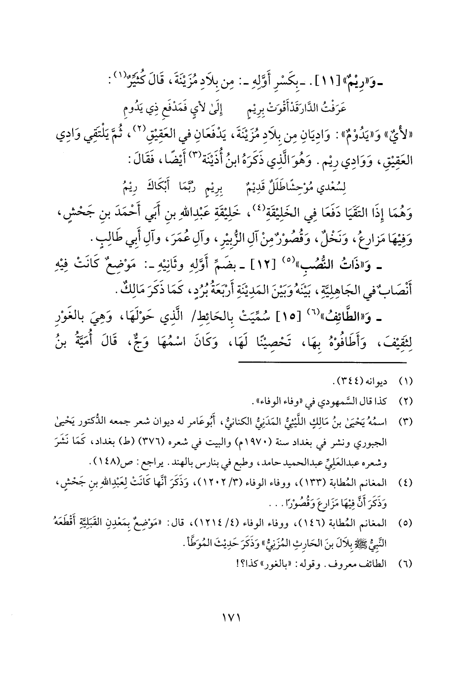 و"الطائف" [15] سميت بالحائط/ الذي حولها، وهي بالغور لتثقيف، وأطافوه بها، تحصيناً لها، وكان اسمها وج، قال أمية بن