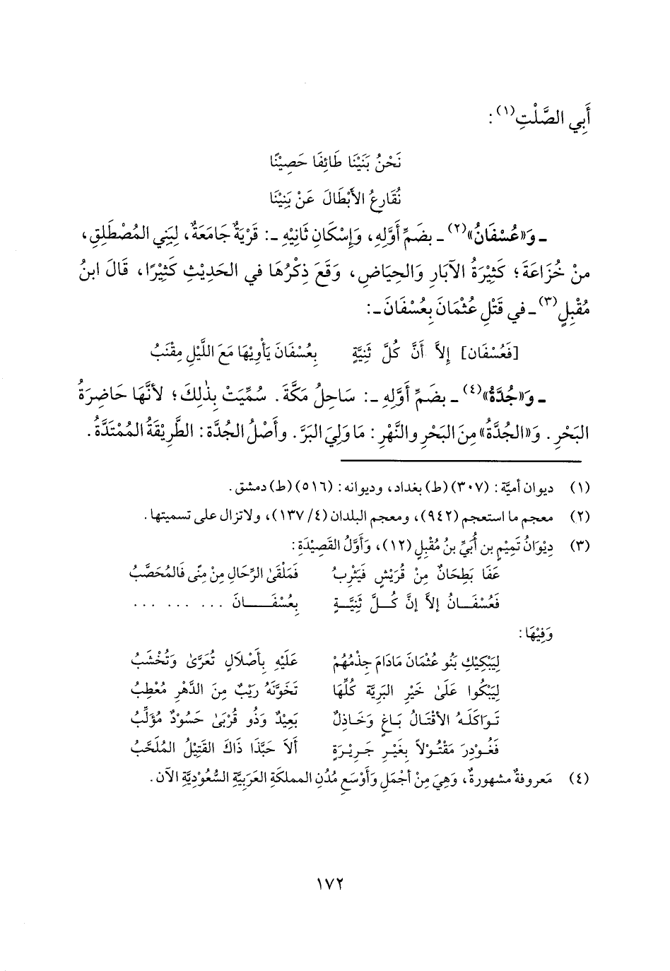 و"عسفان"- بضم أوله، وإسكان ثانيه: قرية جامعة، لبني المصطلق، من خزاعة؛ كثيرة الآبار والحياض، وقع ذكرها في الحديث كثيراً، قال ابن مقبل- في قتل عثمان بعسفان-: