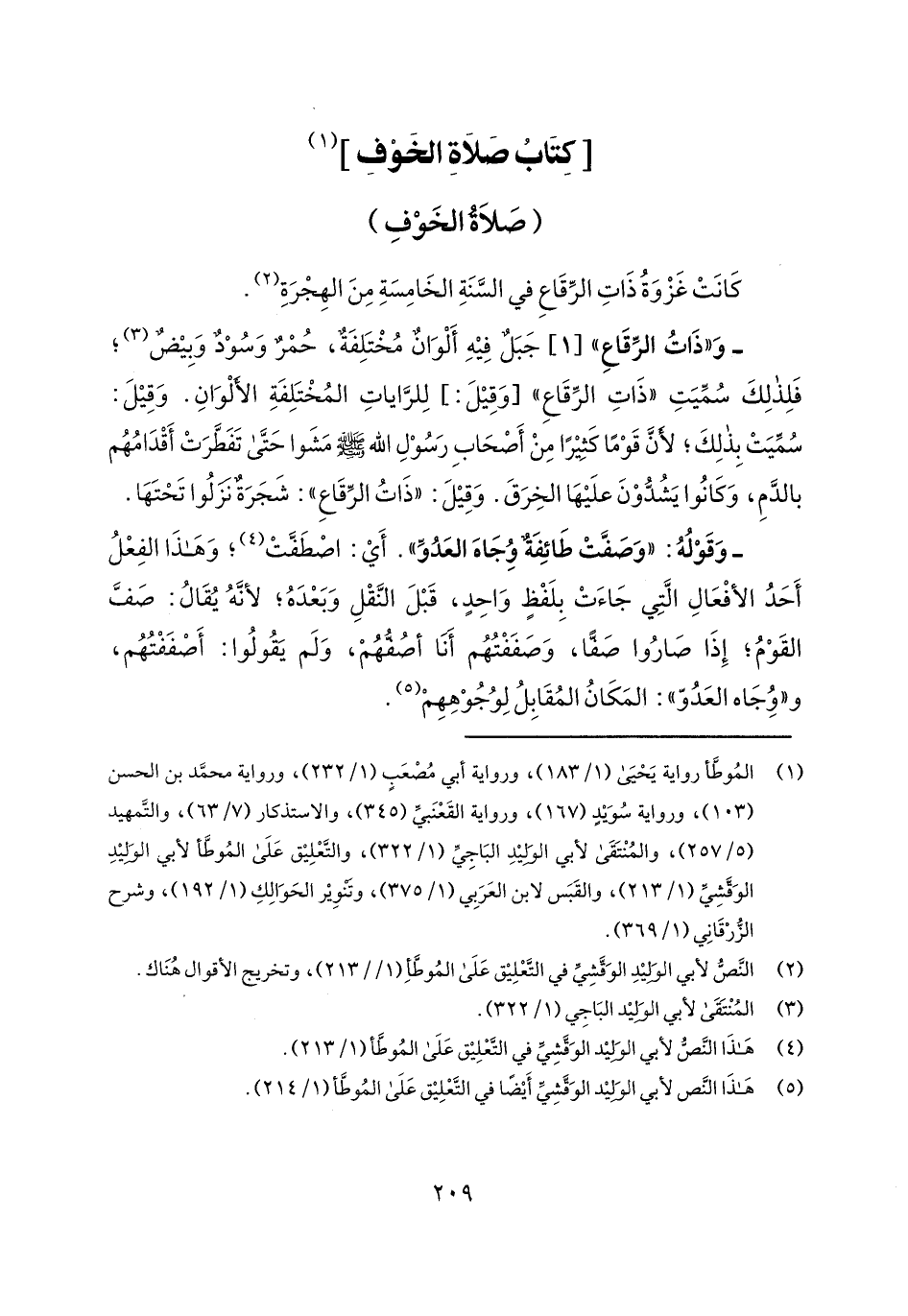 وقوله: "وصفت طائفة وجاه العدو". أي: اصطفت؛ وهذا الفعل أحد الأفعال التي جاءت بلفظ واحد، قبل النقل وبعده؛ لأنه يقال: صف القوم؛ إذا صاروا صفاً، وصففتهم أنا أصفهم، ولم يقولوا: أصففتهم، و"وجاه العدو": المكان المقابل لوجوههم.