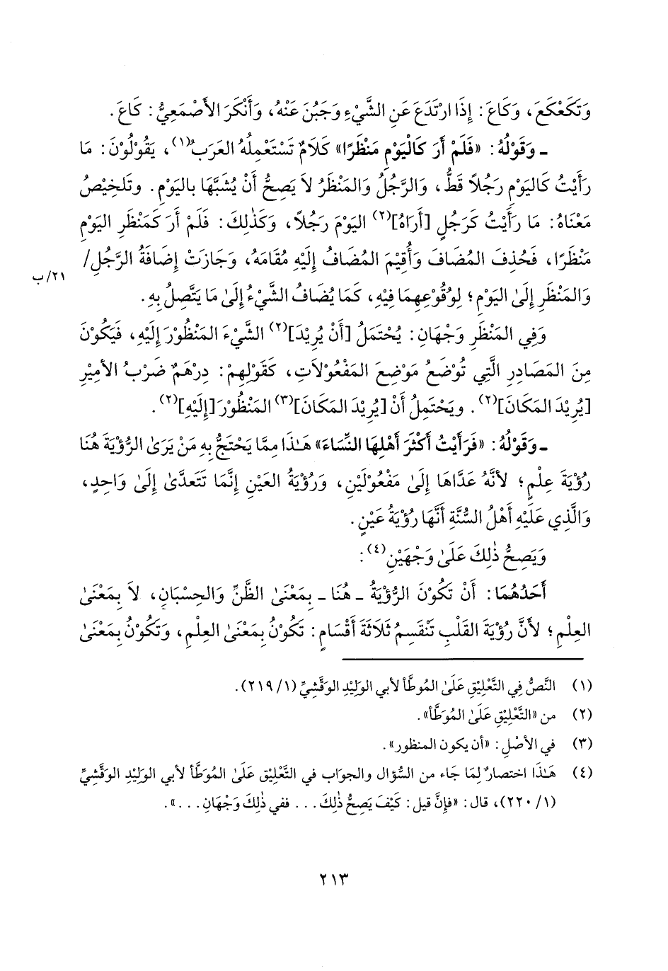 وفي المنظر وجهان: يحتمل [أن يريد] الشيء المنظور إليه، فيكون من المصادر التي توضع موضع المفعولات، كقولهم: درهم ضرب الأمير [يريد المكان]. ويحتمل أن [يريد المكان] المنظور [إليه].
