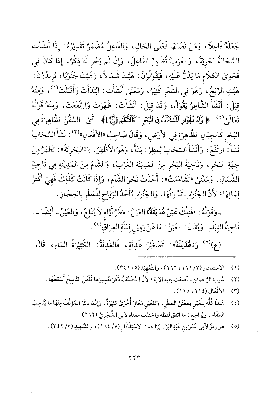 جعله فاعلاً، ومن نصبها فعلى الحال، والفاعل مضمر تقديره: إذا أنشأت السحابة بحرية، والعرب تضمر الفاعل، وإن لم يجر له ذكر، إذا كان في فحوى الكلام ما يدل عليه، فيقولون: هبت شمالاً، وهبت جنوباً، يريدون: هبت الريح، وهو في الشعر كثير، ومعنى أنشأت: ابتدأت وأقبلت، ومنه قيل: أنشأ الشاعر يقول، وقد قيل: أنشأت: ظهرت وارتفعت، ومنه قوله تعالى: {وَلَهُ الْجَوَارِي الْمُنشَآتُ فِي الْبَحْرِ كَالأَعْلامِ (24)}. أي: السفن الظاهرة في البحر كالجبال الظاهرة في الأرض، وقال صاحب "الأفعال": نشأ السحاب نشأ: ارتفع، وأنشأ السحاب يمطر: بدأ، وهو الأظهر، و"البحرية": تظهر من جهة البحر، وناحية البحر من الدينة الغرب، والشام من المدينة في ناحية الشمال. ومعنى "تشاءمت": أخذت نحو الشأم، وإذا كانت كذلك فهي أكثر لمائها؛ لأن الجنوب تسوقها، والجنوب أحد الرياح للمطر بالحجاز.