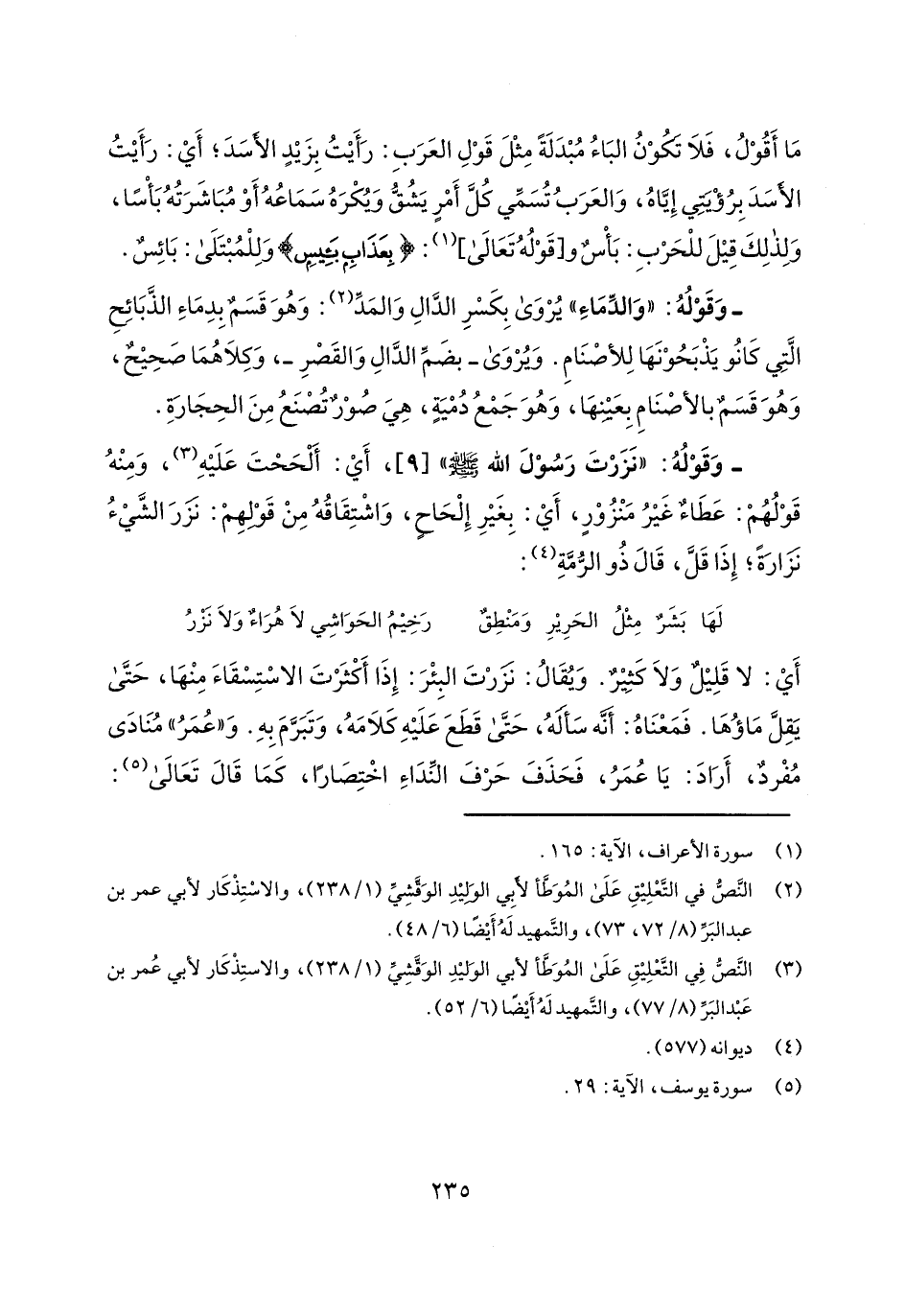 وقوله: "نزرت رسول الله صلى الله عليه وسلم" [9]، أي: ألححت عليه، ومنه قولهم: عطاء غير منزور، أي: بغير إلحاح، واشتقاقه من قولهم: نزر الشيء نزارة؛ إذا قل، قال ذو الرمة: