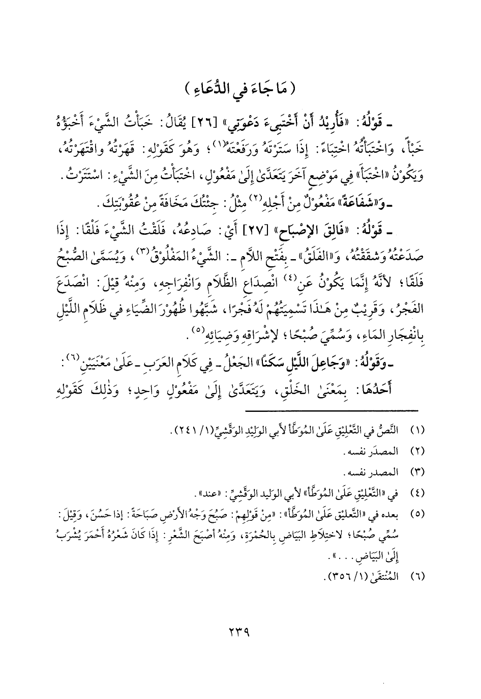 قوله: "فالق الإصباح" [27] أي: صادعه، فلقت الشيء فلقاً: إذا صدعته وشققته، و"الفلق"- بفتح اللام-: الشيء المفلوق، ويسمى الصبح فلقاً؛ لأنه إنما يكون عن انصداع الظلام وانفراجه، ومنه قيل: انصدع الفجر، وقريب من هذا تسميتهم له فجراً، شبهوا ظهور الضياء في ظلام الليل بانفجار الماء، وسمي صبحاً؛ لإشراقه وضيائه.