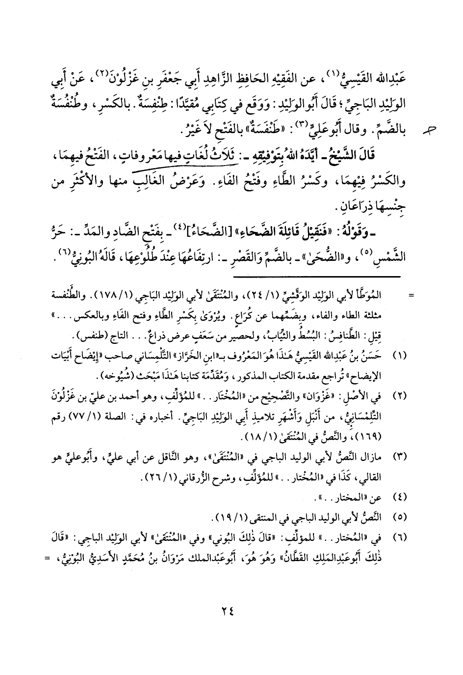 عبد الله القيسي، عن الفقيه الحافظ الزاهد أبي جعفر بن غزلون، عن أبي الوليد الباجي؛ قال أبو الوليد: ووقع في كتابي مقيداً: طنفسةٌ. بالكسر، وطنفسةٌ بالضم. وقال أبو علي: "طنفسةٌ" بالفتح لا غير.