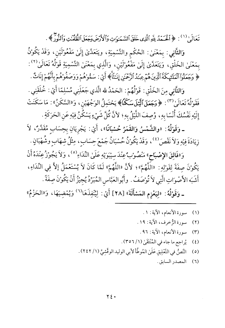 تعالى: {الْحَمْدُ لِلَّهِ الَّذِي خَلَقَ السَّمَوَاتِ وَالأَرْضَ وَجَعَلَ الظُّلُمَاتِ وَالنُّورَ}.