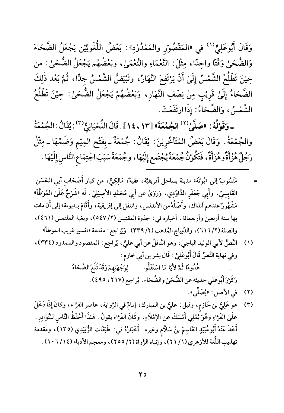 - وقوله: "صلى الجمعة" [13، 14]. قال اللحياني: يقال: جمعة- بفتح الميم وضمها- مثل رجل هُزْأةٌ وهُزَأَةٌ، فتكون جمعة يجتمع إليها، وجمعةً سبب اجتماع الناس إليها.
