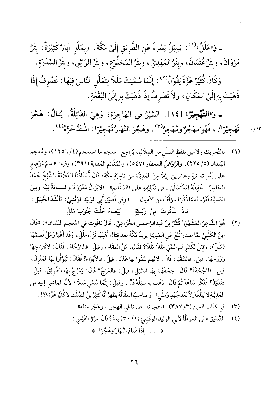 وكان كُثيرُ عزة يقول: إنما سميت مللاً لتملل الناس فيها: تصرف إذا ذهبت به إلى المكان، ولا تصرف إذا ذهبت به إلى البقعة.