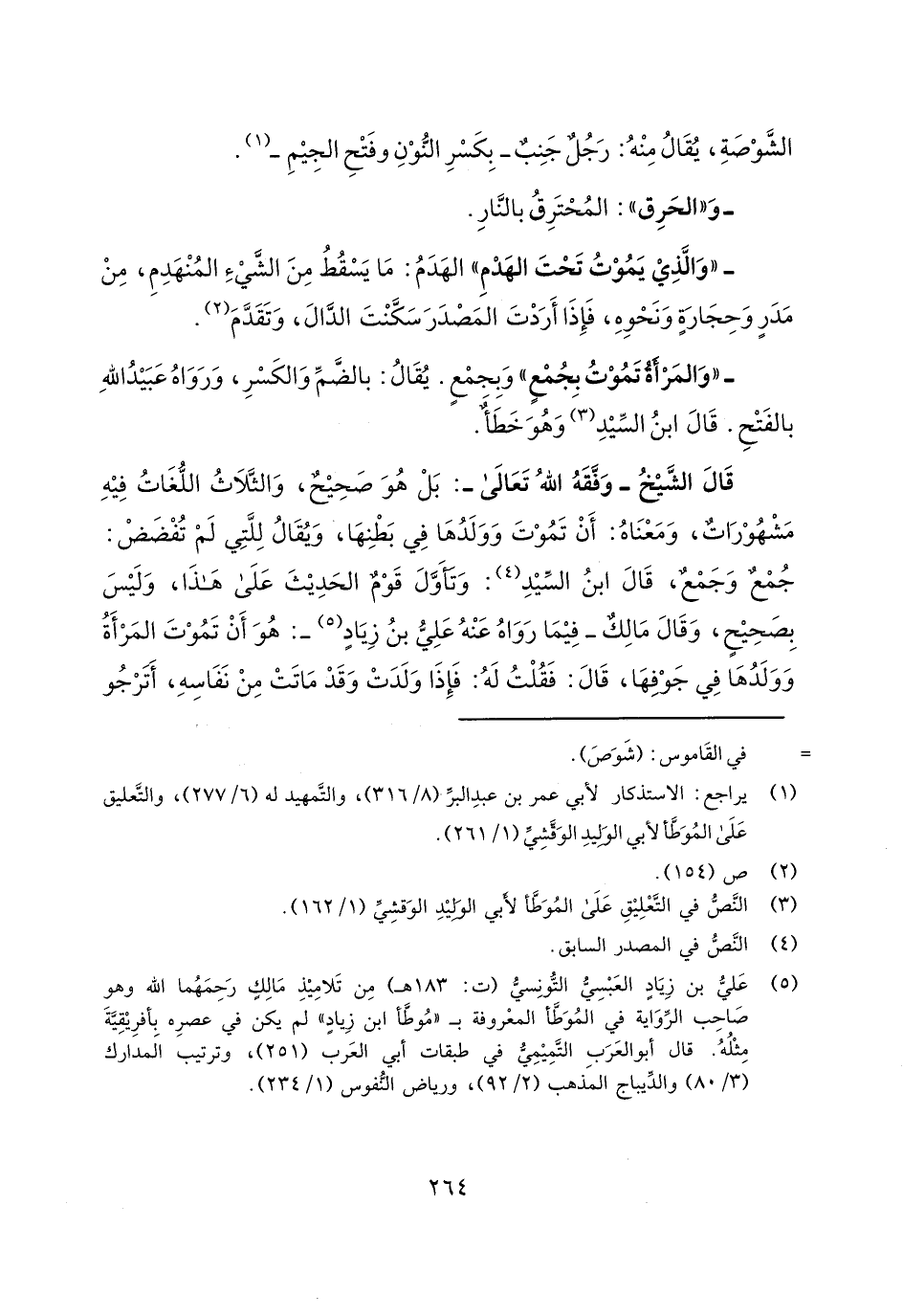 قال الشيخ- وفقه الله تعالى-: بل هو صحيح، والثلاث اللغات فيه مشهورات، ومعناه: أن تموت وولدها في بطنها، ويقال للتي لم تفضض: جمع وجمع، قال ابن السيد: وتأول قوم الحديث على هذا، وليس بصحيح، وقال مالك- فيما رواه عنه علي بن زياد-: هو أن تموت المرأة وولدها في جوفها، قال: فقلت له: فإذا ولدت وقد ماتت من نفاسه، أترجو