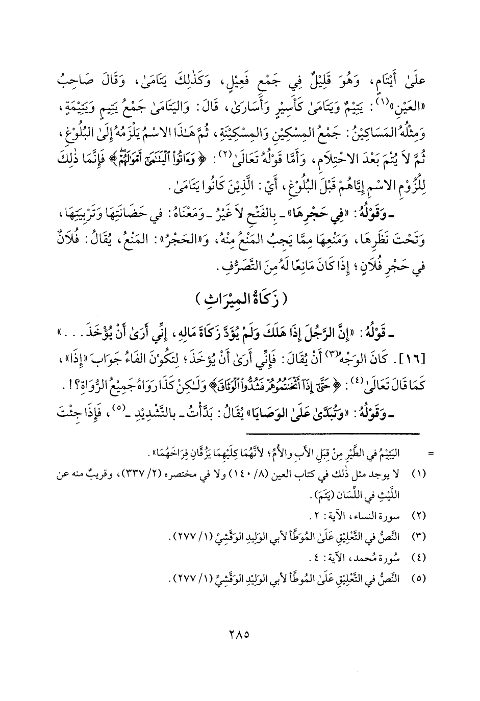 قوله: "إن الرجل إذا هلك ولم يؤد زكاة ماله، إني أرى أن يؤخذ ... " [16]. كان الوجه أن يقال: فإني أرى أن يؤخذ؛ لتكون الفاء جواب "إذا"، كما قال تعالى: {حَتَّى إِذَا أَثْخَنتُمُوهُمْ فَشُدُّوا الْوَثَاقَ} ولكن كذا رواه جميع الرواة؟!.