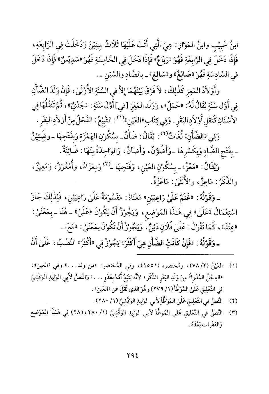 وأولاد المعز كذلك، لا فرق بينهما إلا في السنة الأولى، فإن ولد الضأن في أول سنة يقال له: "حمل"، وولد المعز [في] أول سنة: "جدي"، ثم تنقلها في الأسنان كنقل أولاد البقر. وفي كتاب "العين": التبيع: الفحل من أولاد البقر.