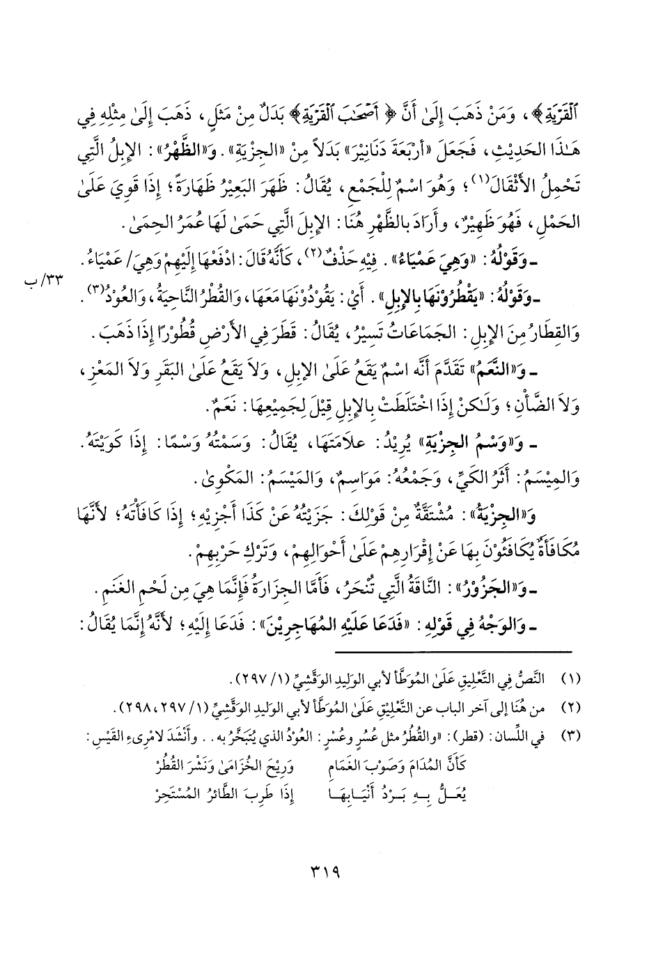 و"الجزية": مشتقة من قولك: جزيته عن كذا أجزيه؛ إذا كافأته؛ لأنها مكافأة يكافئون بها عن إقرارهم على أحوالهم، وترك حربهم.