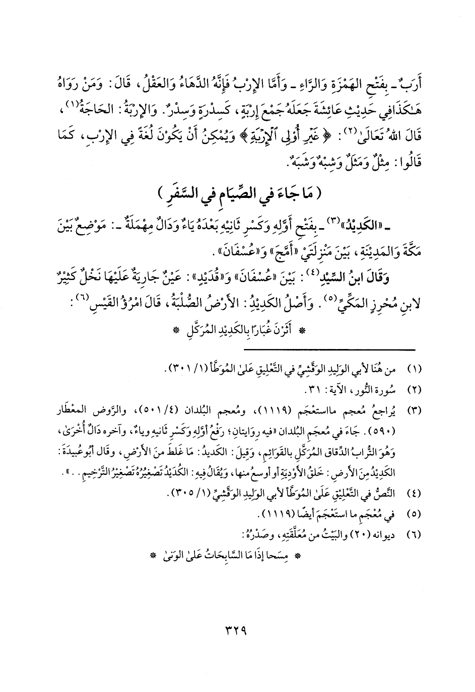 وقال ابن السيد: بين "عسفان" و"قديد": عين جارية عليها نخل كثير لابن محرز المكي. وأصل الكديد: الأرض الصلبة، قال امرؤ القيس: