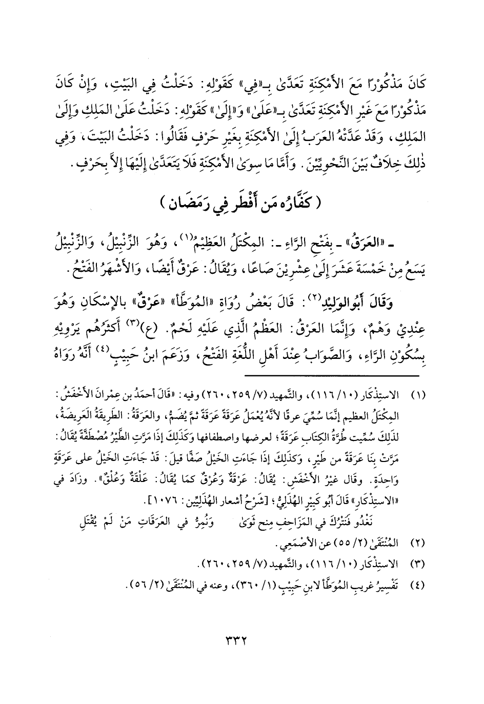 وقال أبو الوليد: قال بعض رواة "الموطأ" "عرق" بالإسكان وهو عندي وهم، وإنما العرق: العظم الذي عليه لحم. (ع) أكثرهم يرويه بسكون الراء، والصواب عند أهل اللغة الفتح، وزعم ابن حبيب أنه رواه