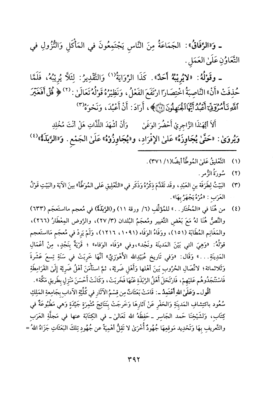 ويروى: "حتى يجاوزه" على الإفراد، و"يجاوزوه" على الجمع. و"الربذة"