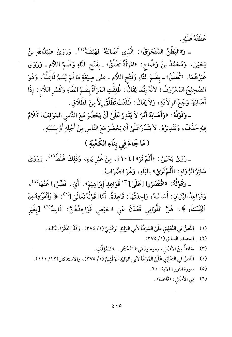 روى يحيى: "ألم تر" [104]. من غير ياء، وذلك غلط. وروى سائر الرواة: "ألم تري" بالياء، وهو الصواب.