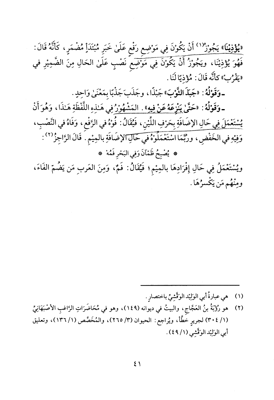 - وقوله: "حتى ينزعه عن فيه". المشهور في هذه اللفظة هذا، وهو أن يستعمل في حال الإضافة بحرف اللين، فيقال: فوه في الرفع، وفاه في النصب، وفيه في الخفض، وربما استعملوه في حال الإضافة بالميم. قال الراجز: