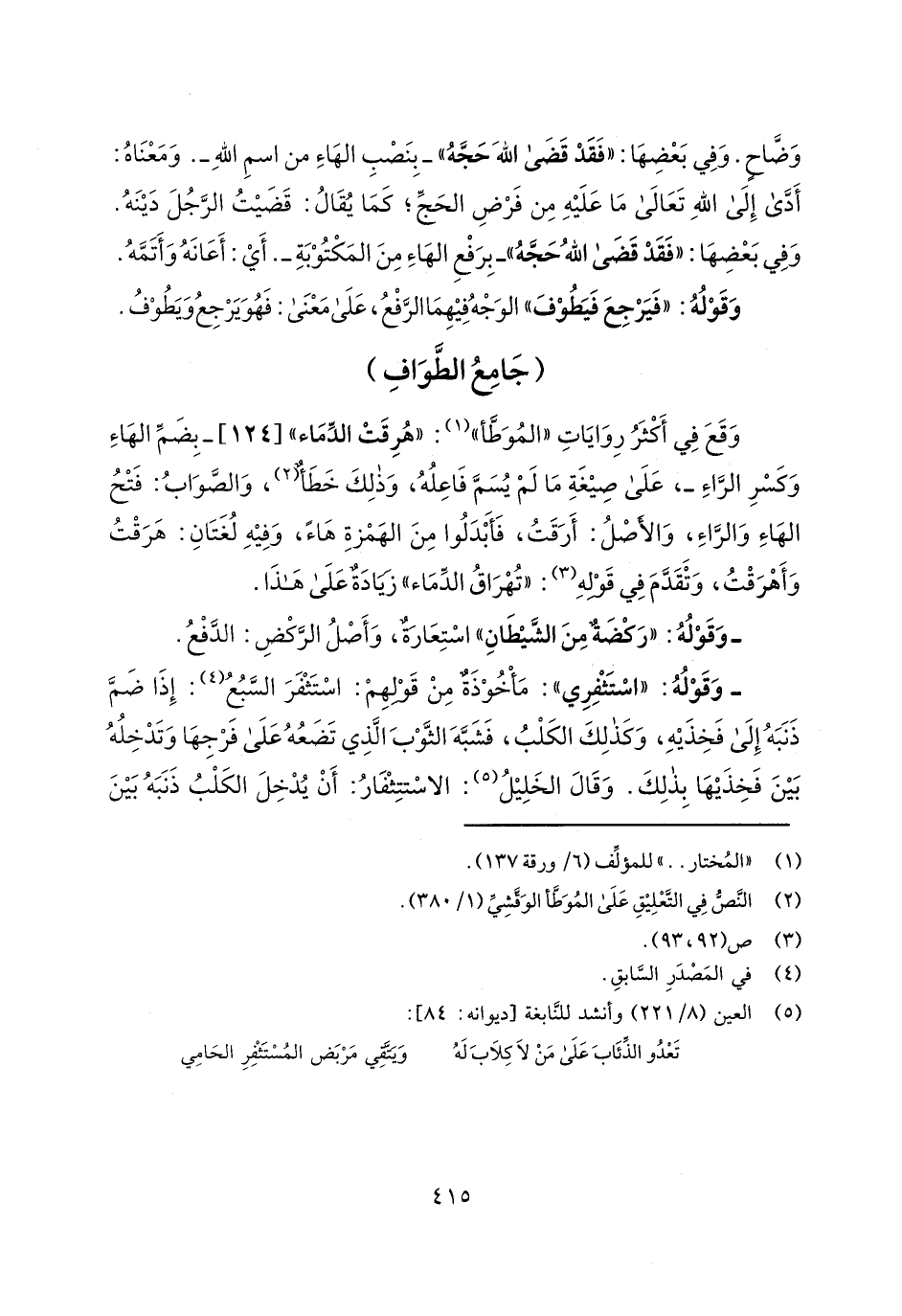 وقع في أكثر روايات "الموطأ": "هرقت الدماء" [124]- بضم الهاء وكسر الراء-، على صيغة ما لم يسم فاعله، وذلك خطأ، والصواب: فتح الهاء والراء، والأصل: أرقت، فأبدلوا من الهمزة هاء، وفيه لغتان: هرقت وأهرقت، وتقدم في قوله: "تهراق الدماء" زيادة على هذا.