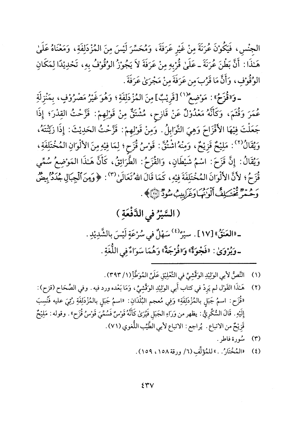 الجنس، فيكون عرنة من غير عرفة، ومحسر ليس من المزدلفة، ومعناه على هذا: أن بطن عرنة- على قربه من عرفة لا يجوز الوقوف به، تحديداً لمكان الوقوف، وأن ما قرب من عرفة من مجرى عرفة.