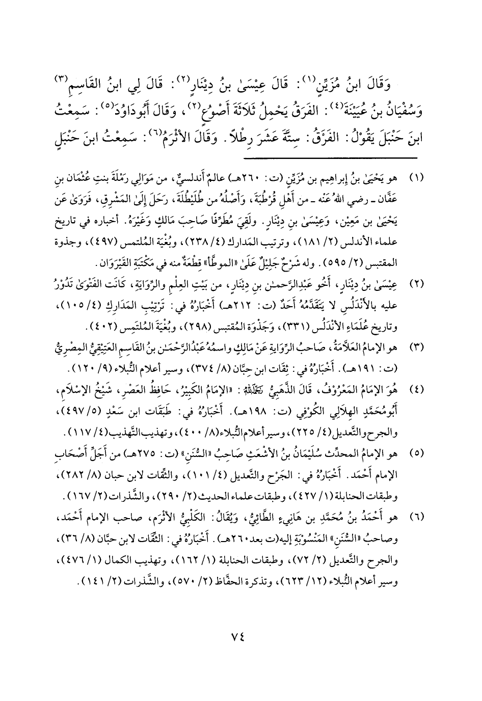 وقال ابن مزينٍ: قال عيسى بن دينارٍ: قال لي ابن القاسم وسفيان بن عيينة: الفرق يحمل ثلاثة أصوعٍ، وقال أبو داود: سمعت ابن حنبل يقول: الفرق: ستة عشر رطلاً. وقال الأثرم: سمعت ابن حنبل
