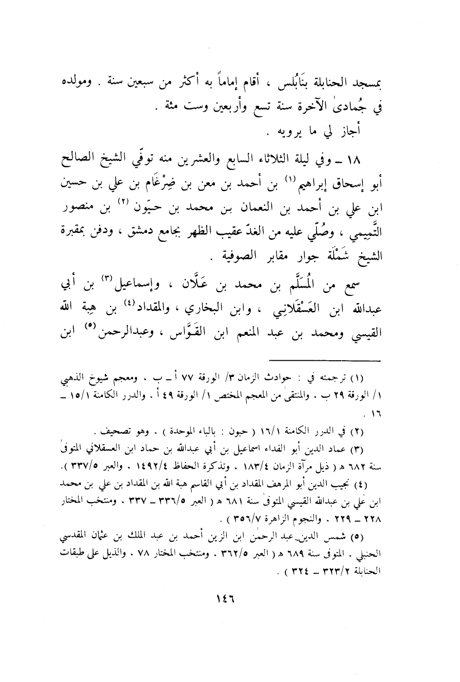 18 - وَفِي لَيْلَة الثُّلَاثَاء السَّابِع وَالْعِشْرين مِنْهُ توفّي الشَّيْخ الصَّالح أَبُو إِسْحَاق إِبْرَاهِيم بن أَحْمد بن معن بن ضرغام بن عَليّ بن حُسَيْن ابْن عَليّ بن أَحْمد ابْن النُّعْمَان بن مُحَمَّد بن حيون بن مَنْصُور التَّمِيمِي وَصلي عَلَيْهِ من الْغَد عقيب الظّهْر بِجَامِع دمشق وَدفن بمقبرة الشَّيْخ شملة جوَار مَقَابِر الصُّوفِيَّة