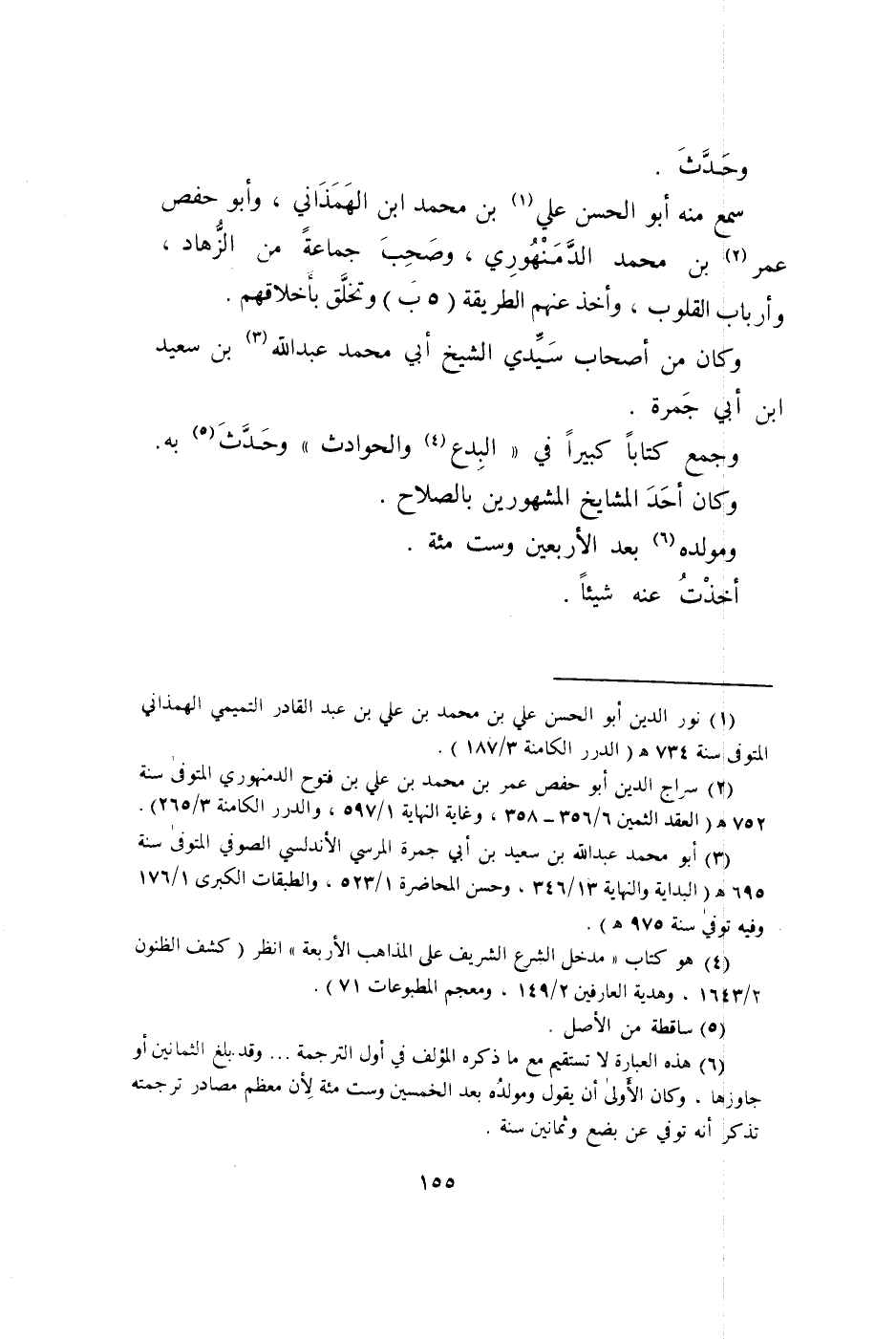 سمع مِنْهُ أَبُو الْحسن عَليّ بن مُحَمَّد ابْن الهمذاني وَأَبُو حَفْص عمر بن مُحَمَّد الدمنهوري وَصَحب جمَاعَة من الزهاد وأرباب الْقُلُوب وَأخذ عَنْهُم الطَّرِيقَة (5 ب) وتخلق بأخلاقهم