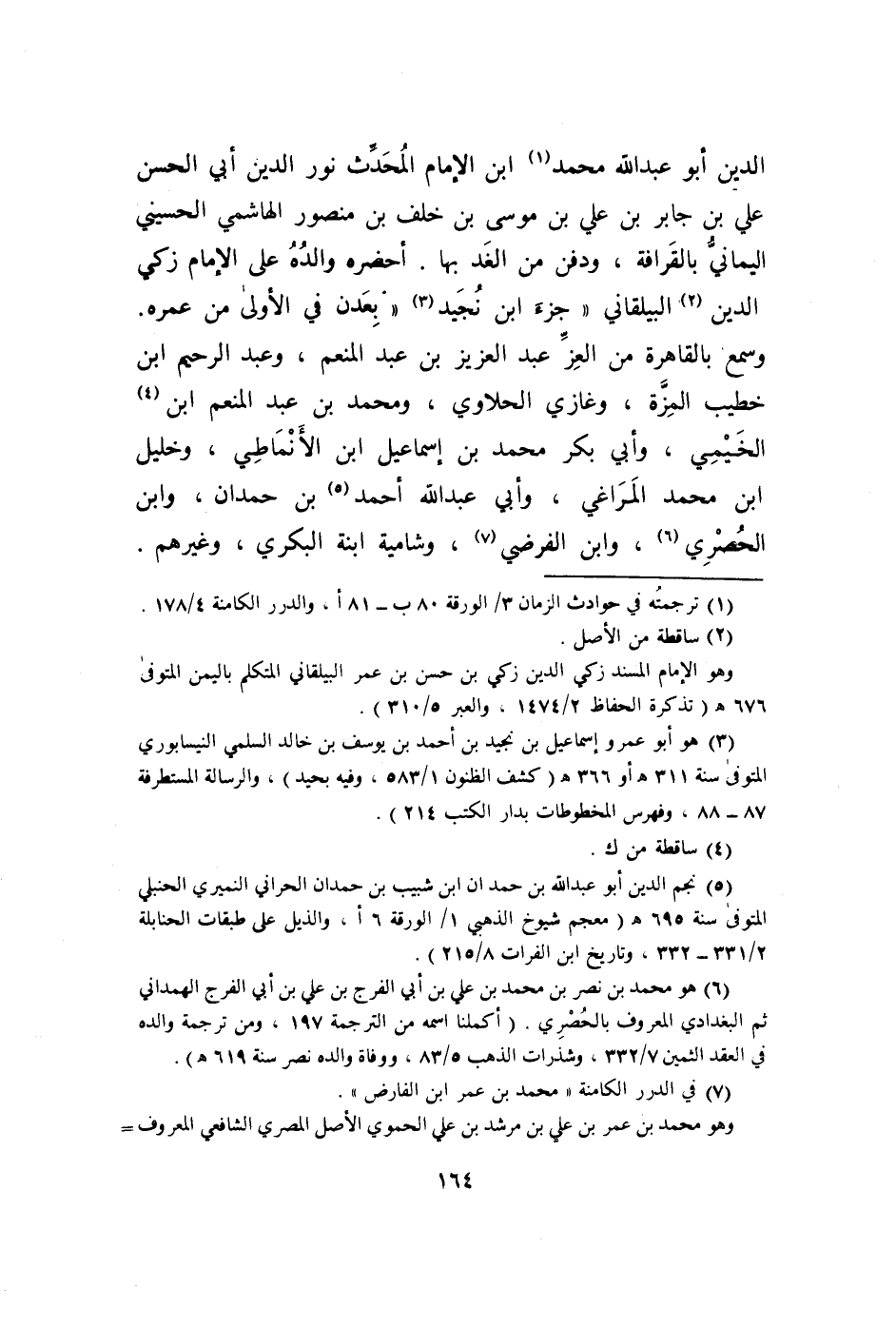 الدّين أَبُو عبد الله مُحَمَّد ابْن الإِمَام الْمُحدث نور الدّين أبي الْحسن عَليّ بن جَابر بن عَليّ بن مُوسَى بن خلف بن مَنْصُور الْهَاشِمِي الْحُسَيْنِي الْيَمَانِيّ بالقرافة وَدفن من الْغَد بهَا أحضرهُ وَالِده على الإِمَام زكي الدّين البيلقاني جُزْء ابْن نجيد بعدن فِي الأولى من عمره وَسمع بِالْقَاهِرَةِ من الْعِزّ عبد الْعَزِيز بن عبد الْمُنعم وَعبد الرَّحِيم ابْن خطيب المزة وغازي الحلاوي وَمُحَمّد بن عبد الْمُنعم ابْن الخيمي وَأبي بكر مُحَمَّد بن إِسْمَاعِيل ابْن الْأنمَاطِي وخليل ابْن مُحَمَّد المراغي وَأبي عبد الله أَحْمد بن حمدَان وَابْن الحصري وَابْن الفرضي وشامية ابْنة الْبكْرِيّ وَغَيرهم