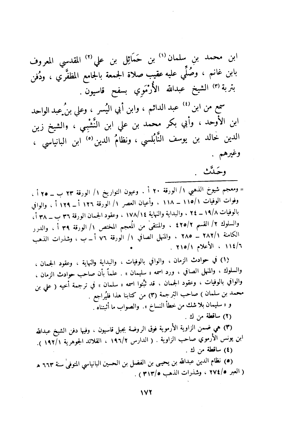 ابْن مُحَمَّد بن سلمَان بن حمائل بن عَليّ الْمَقْدِسِي الْمَعْرُوف بِابْن غَانِم وَصلي عَلَيْهِ عقيب صَلَاة الْجُمُعَة بالجامع المظفري وَدفن بتربة الشَّيْخ عبد الله الأرموي بسفح قاسيون