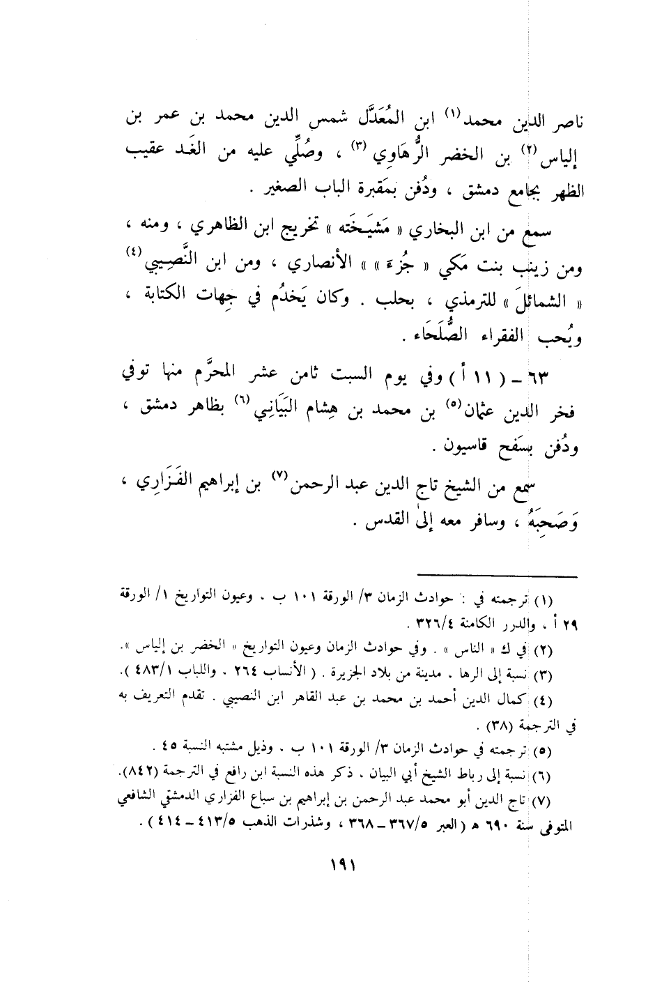 63 - (11 أ) وَفِي يَوْم السبت ثامن عشر الْمحرم مِنْهَا توفّي فَخر الدّين عُثْمَان ابْن مُحَمَّد بن هِشَام الْبَيَانِي بِظَاهِر دمشق وَدفن بسفح قاسيون