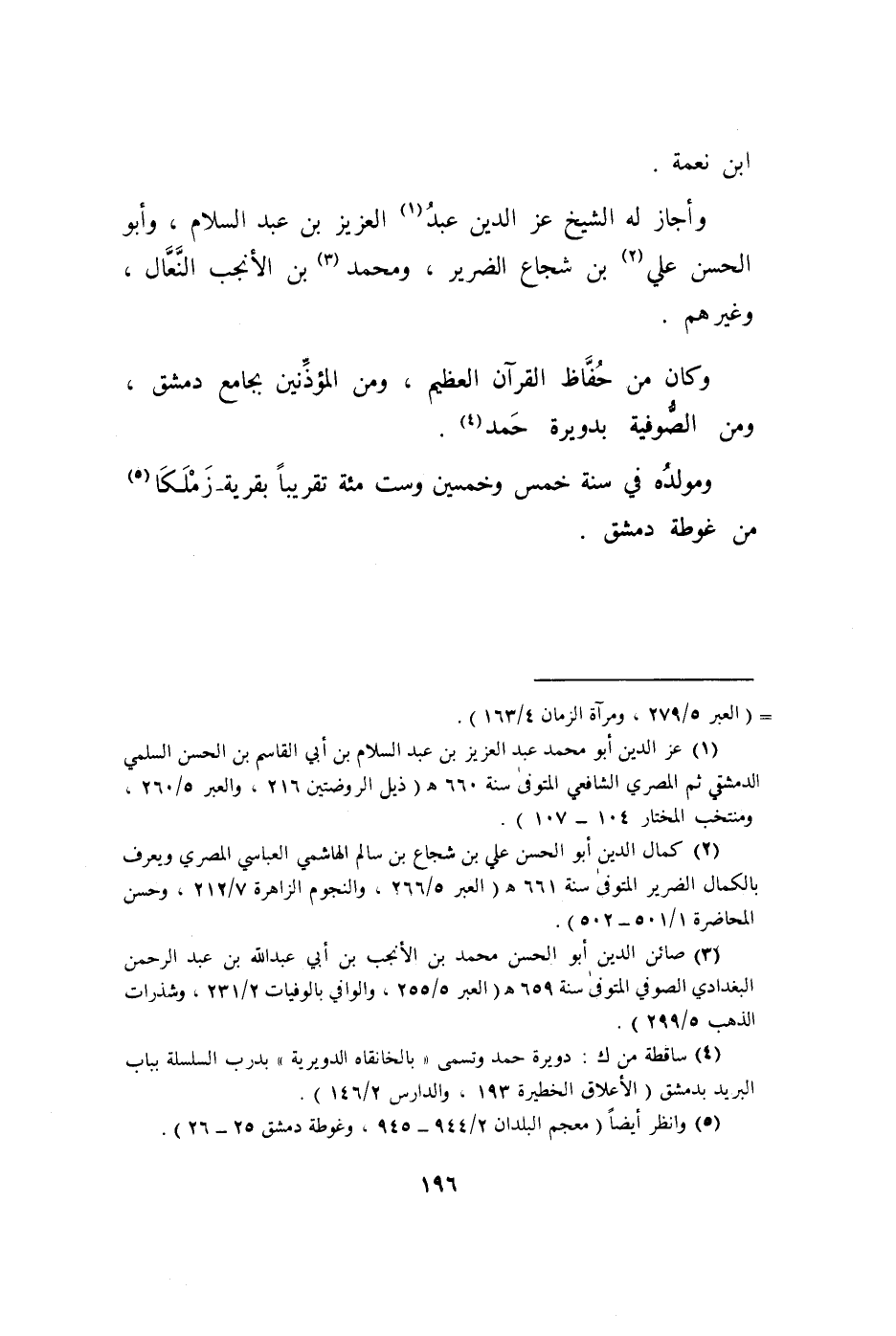 ومولده فِي سنة خمس وَخمسين وست مئة تَقْرِيبًا بقرية زملكا من غوطة دمشق