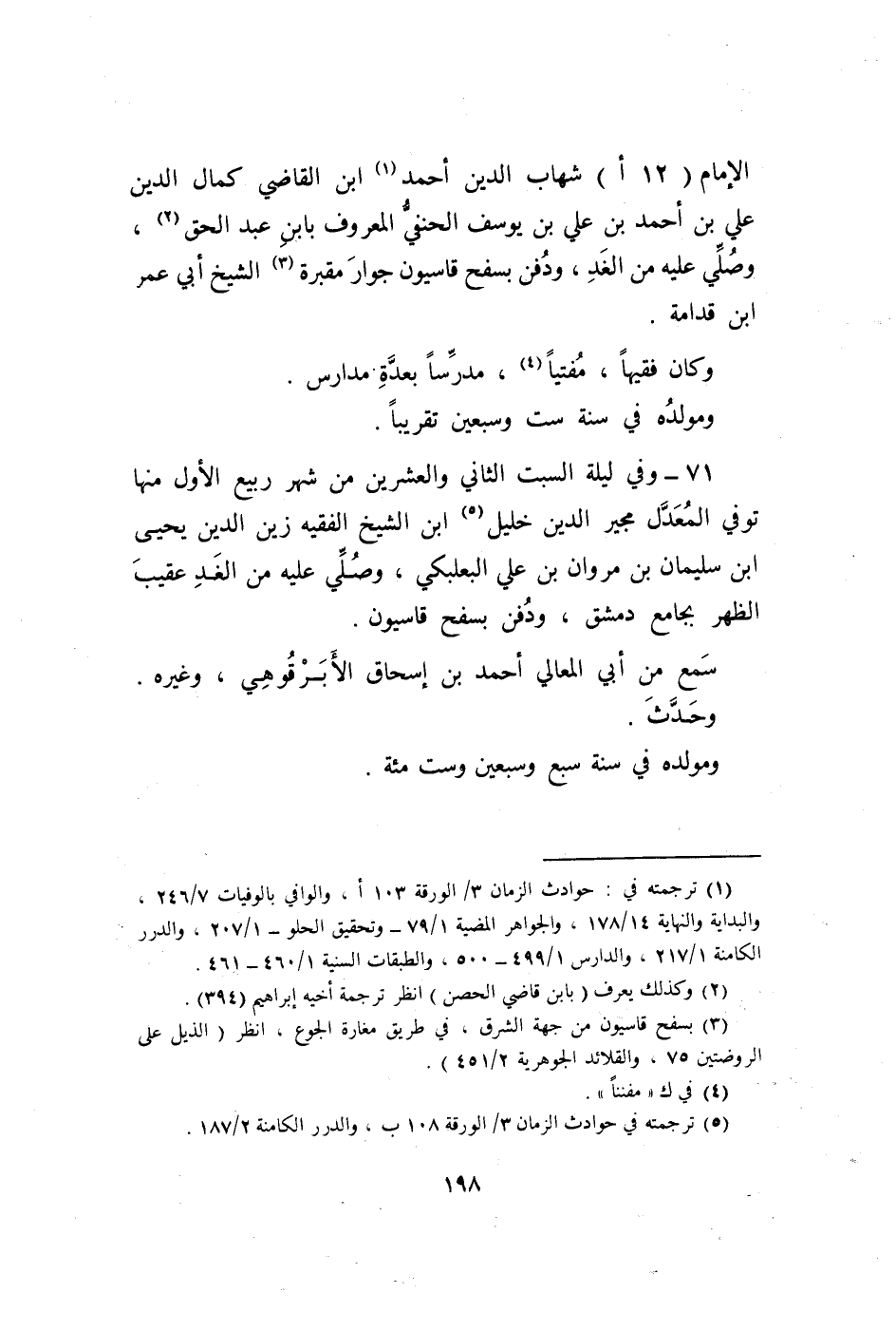71 - وَفِي لَيْلَة السبت الثَّانِي وَالْعِشْرين من شهر ربيع الأول مِنْهَا توفّي الْمعدل مجير الدّين خَلِيل ابْن الشَّيْخ الْفَقِيه زين الدّين يحيى بن سُلَيْمَان بن مَرْوَان بن عَليّ البعلبكي وَصلي عَلَيْهِ من الْغَد عقيب الظّهْر بِجَامِع دمشق وَدفن بسفح قاسيون