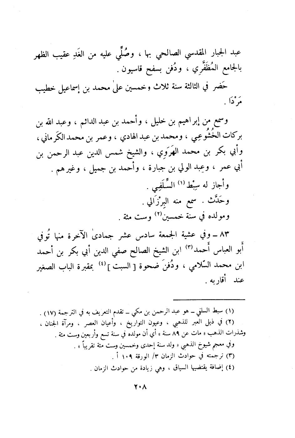 83 - وَفِي عَشِيَّة الْجُمُعَة سادس عشر جُمَادَى الْآخِرَة مِنْهَا توفّي أَبُو الْعَبَّاس أَحْمد ابْن الشَّيْخ الصَّالح صفي الدّين أبي بكر بن أَحْمد ابْن مُحَمَّد السلَامِي وَدفن ضحوة السبت بمقبرة الْبَاب الصَّغِير عِنْد أَقَاربه
