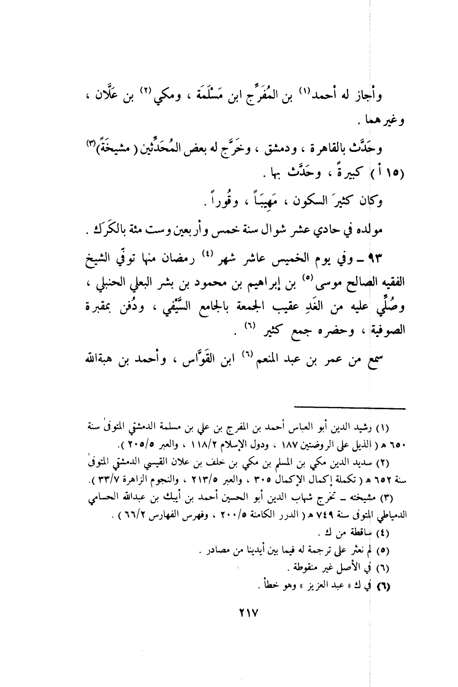 93 - وَفِي يَوْم الْخَمِيس عَاشر شهر رَمَضَان مِنْهَا توفّي الشَّيْخ الْفَقِيه الصَّالح مُوسَى بن إِبْرَاهِيم بن مَحْمُود بن بشر البعلي الْحَنْبَلِيّ وَصلي عَلَيْهِ من الْغَد عقيب الْجُمُعَة بالجامع السيفي وَدفن بمقبرة الصُّوفِيَّة وحضره جمع كثير