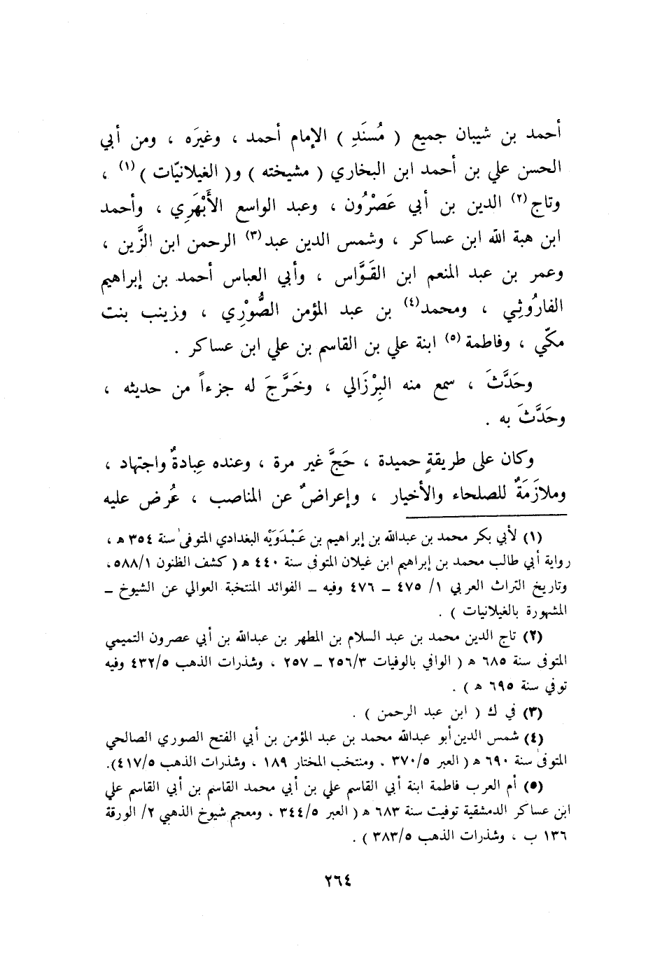 احْمَد بن شَيبَان جَمِيع مُسْند الإِمَام أَحْمد وَغَيره وَمن أبي الْحسن عَليّ بن أَحْمد ابْن البُخَارِيّ مشيخته والغيلانيات وتاج الدّين بن ابي عصرون وَعبد الْوَاسِع الْأَبْهَرِيّ وَأحمد بن هبة الله ابْن عَسَاكِر وشمس الدّين عبد الرَّحْمَن ابْن الزين وَعمر بن عبد الْمُنعم ابْن القواس وَأبي الْعَبَّاس أَحْمد بن إِبْرَاهِيم الفاروثي وَمُحَمّد بن عبد الْمُؤمن الصُّورِي وَزَيْنَب بنت مكي وَفَاطِمَة ابْنة عَليّ بن الْقَاسِم بن عَليّ ابْن عَسَاكِر