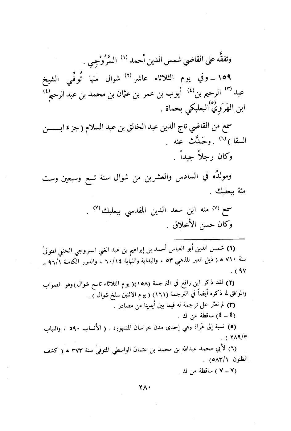 159 - وَفِي يَوْم الثُّلَاثَاء عَاشر شَوَّال مِنْهَا توفّي الشَّيْخ عبد الرَّحِيم بن أَيُّوب ابْن عمر بن عُثْمَان بن مُحَمَّد بن عبد الرَّحِيم ابْن الْهَرَوِيّ البعلبكي بحماة