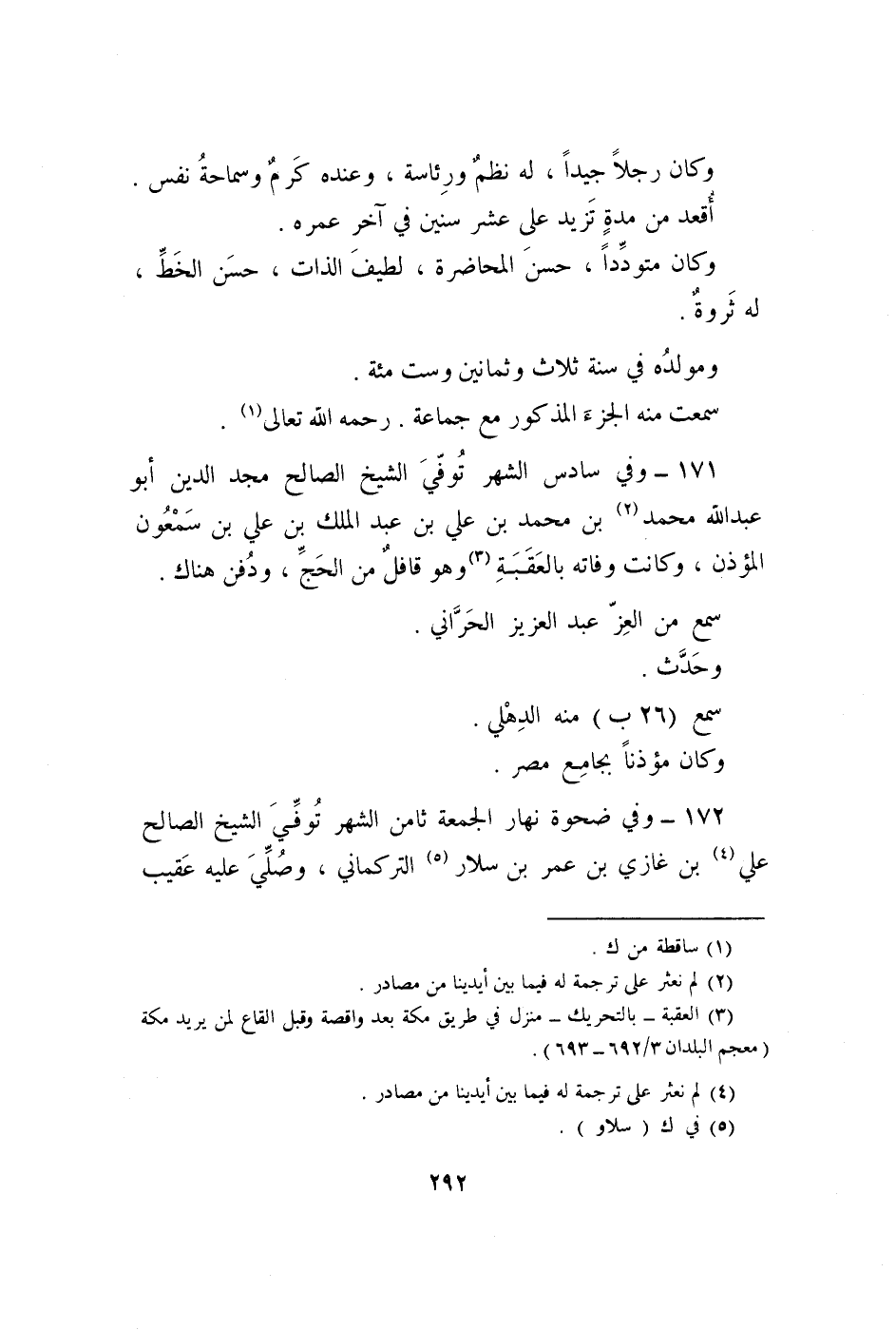 171 - وَفِي سادس الشَّهْر توفّي الشَّيْخ الصَّالح مجد الدّين أَبُو عبد الله مُحَمَّد ابْن مُحَمَّد بن عَليّ بن عبد الْملك بن عَليّ بن سمعون الْمُؤَذّن وَكَانَت وَفَاته بِالْعقبَةِ وَهُوَ قافل من الْحَج وَدفن هُنَاكَ