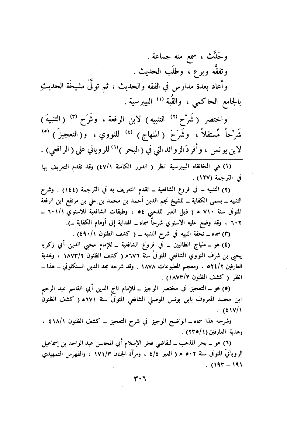 وَاخْتصرَ شرح التَّنْبِيه لِابْنِ الرّفْعَة وَشرح التَّنْبِيه شرحا مُسْتقِلّا وَشرح الْمِنْهَاج للنووي والتعجيز لِابْنِ يُونُس وافرد الزَّوَائِد الَّتِي فِي الْبَحْر للروياني على الرَّافِعِيّ