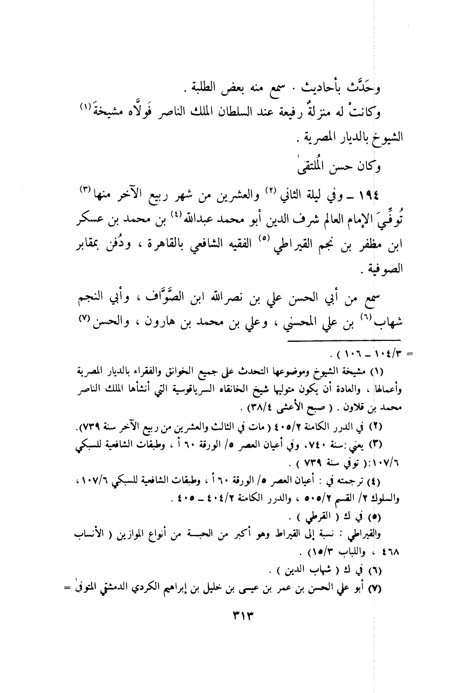 194 - وَفِي لَيْلَة الثَّانِي وَالْعِشْرين من شهر ربيع الآخر مِنْهَا توفّي الإِمَام الْعَالم شرف الدّين أَبُو مُحَمَّد عبد الله بن مُحَمَّد بن عَسْكَر بن مظفر بن نجم القيراطي الْفَقِيه الشَّافِعِي بِالْقَاهِرَةِ وَدفن بمقابر الصُّوفِيَّة