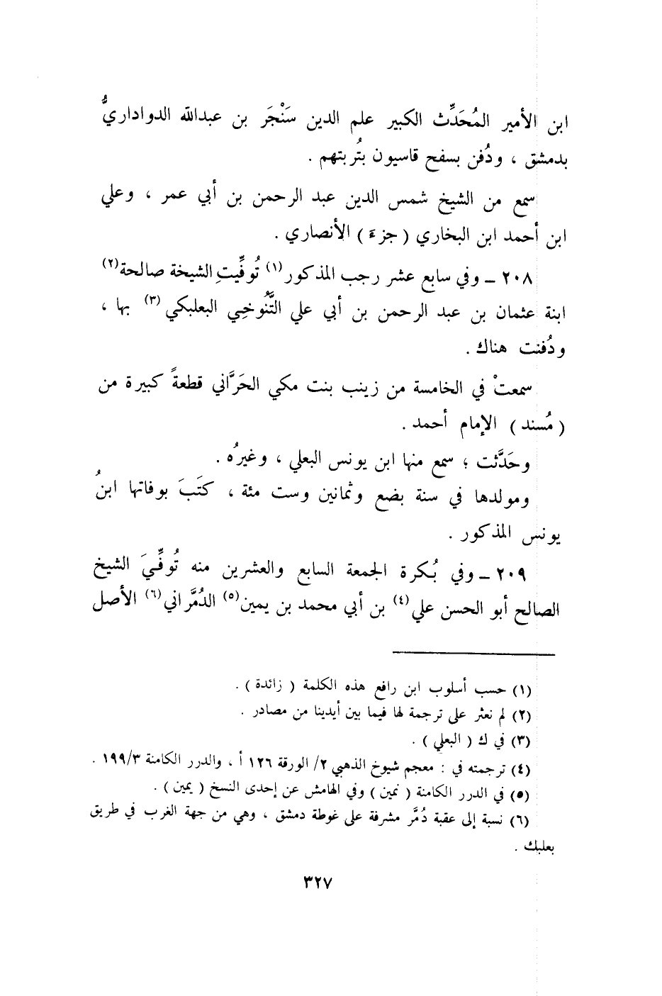 209 - وَفِي بكرَة الْجُمُعَة السَّابِع وَالْعِشْرين مِنْهُ توفّي الشَّيْخ الصَّالح أَبُو الْحسن عَليّ بن أبي مُحَمَّد بن يَمِين الدمراني الأَصْل