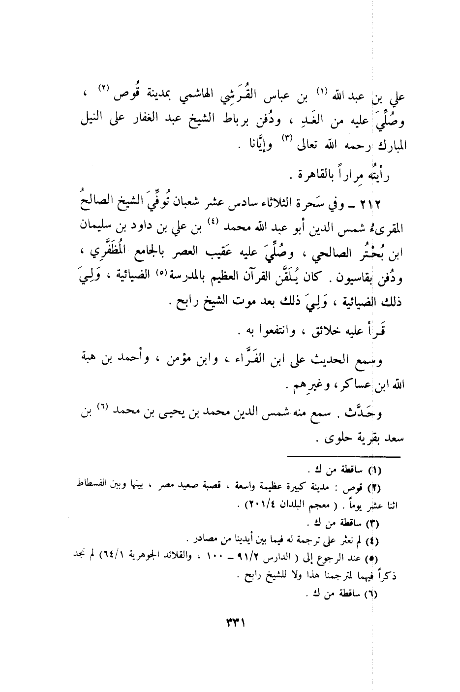 ابْن عَليّ بن عبد الله بن عَبَّاس الْقرشِي الْهَاشِمِي بِمَدِينَة قوص وَصلي عَلَيْهِ من الْغَد وَدفن برباط الشَّيْخ عبد الْغفار على النّيل الْمُبَارك رَحمَه الله تَعَالَى وإيانا