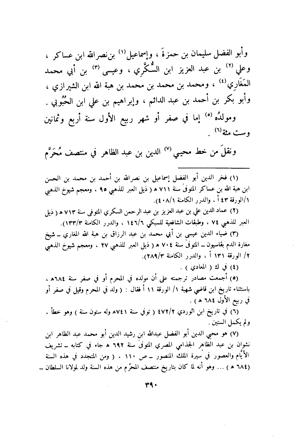 وَنقل من خطّ محيي الدّين بن عبد الظَّاهِر فِي منتصف محرم