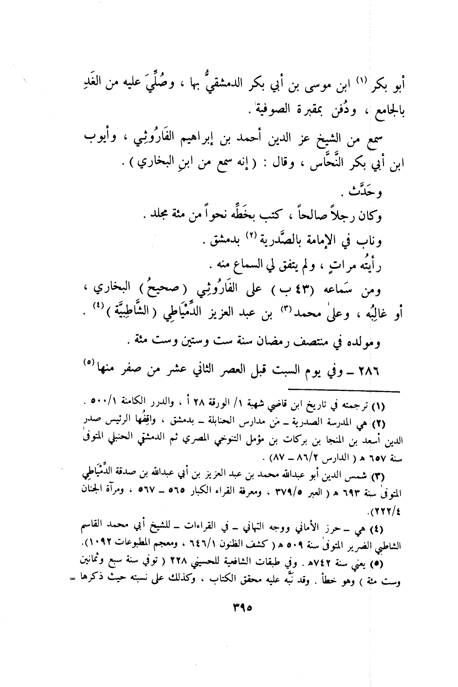 أَبُو بكر بن مُوسَى بن أبي بكر الدِّمَشْقِي بهَا وَصلي عَلَيْهِ من الْغَد بالجامع وَدفن بمقبرة الصُّوفِيَّة
