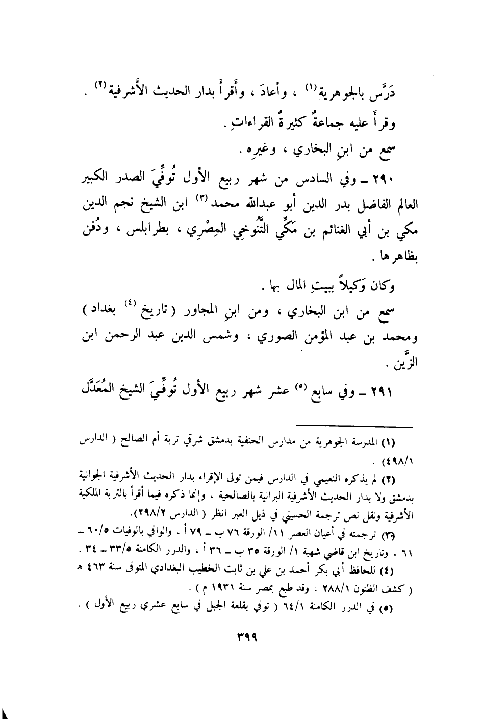 290 - وَفِي السَّادِس من شهر ربيع الأول توفّي الصَّدْر الْكَبِير الْعَالم الْفَاضِل بدر الدّين أَبُو عبد الله مُحَمَّد بن الشَّيْخ نجم الدّين مكي بن أبي الْغَنَائِم ابْن مكي التنوخي الْمصْرِيّ بطرابلس وَدفن بظاهرها