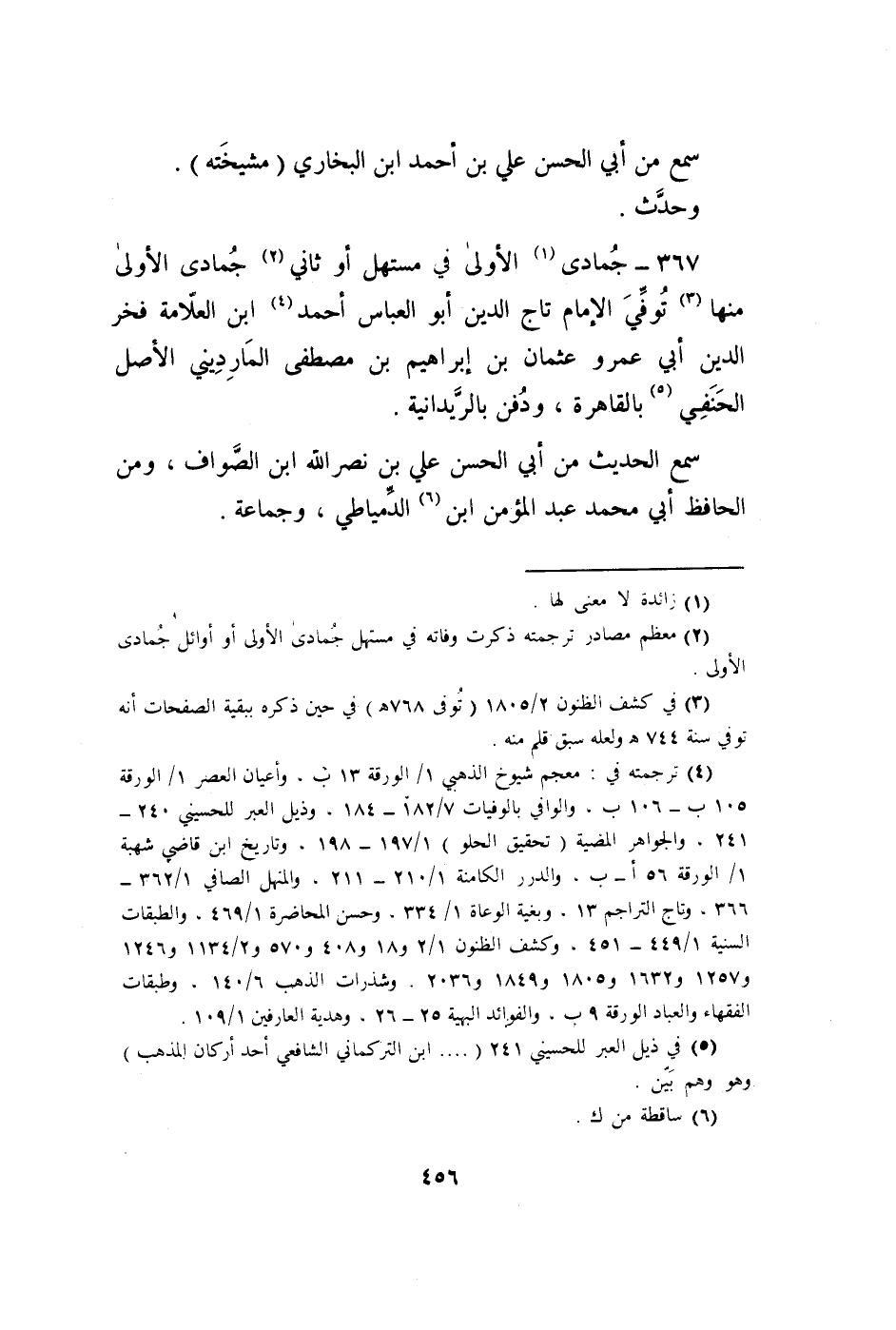367 - جُمَادَى الأولى فِي مستهل أَو ثَانِي جُمَادَى الأولى مِنْهَا توفّي الإِمَام تَاج الدّين أَبُو الْعَبَّاس أَحْمد ابْن الْعَلامَة فَخر الدّين أبي عَمْرو عُثْمَان بن إِبْرَاهِيم بن مصطفى المارديني الأَصْل الْحَنَفِيّ بِالْقَاهِرَةِ وَدفن بالريدانية