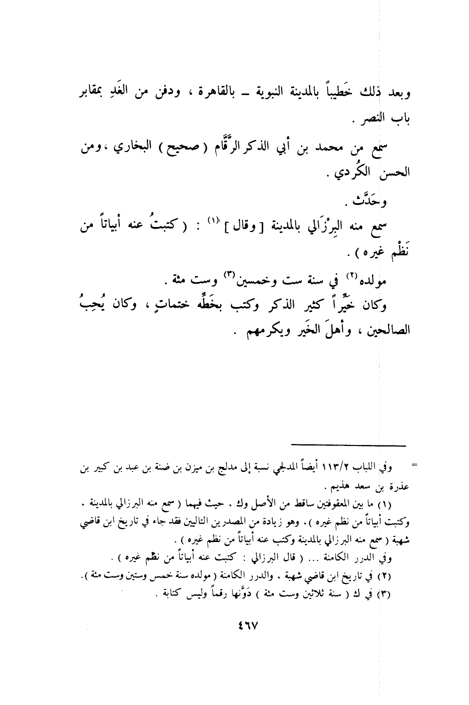 وَسمع مِنْهُ البرزالي بِالْمَدِينَةِ وَقَالَ كتبت عَنهُ أبياتا من نظم غَيره